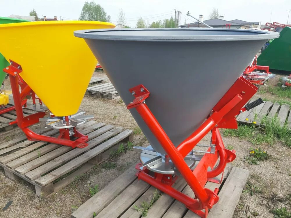 Розкидач мінеральних добрив (Польща) тракторний навісний застосовується для поверхневого внесення мінеральних добрив в гранульованому вигляді, а також для посіву зернових культур і підживлення в період вегетації, що впливає на врожайність. Завантаження машини проводиться у польових умовах. Доза внесення добрив залежить від регулювання механізму керування дозуючими заслінками і робочої швидкості руху