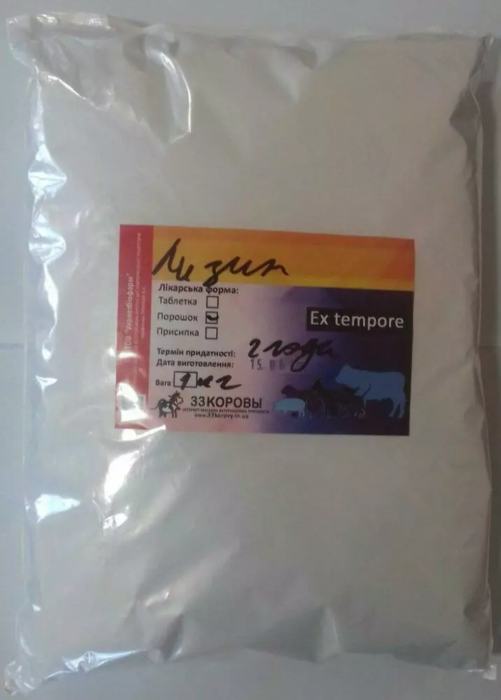 Лізин гідрохлорид. Лізин - микрогранулированный сипучий порошок кремового кольору. Добре розчинний у воді. Відноситься до групи лімітуючих незамінних амінокислот.