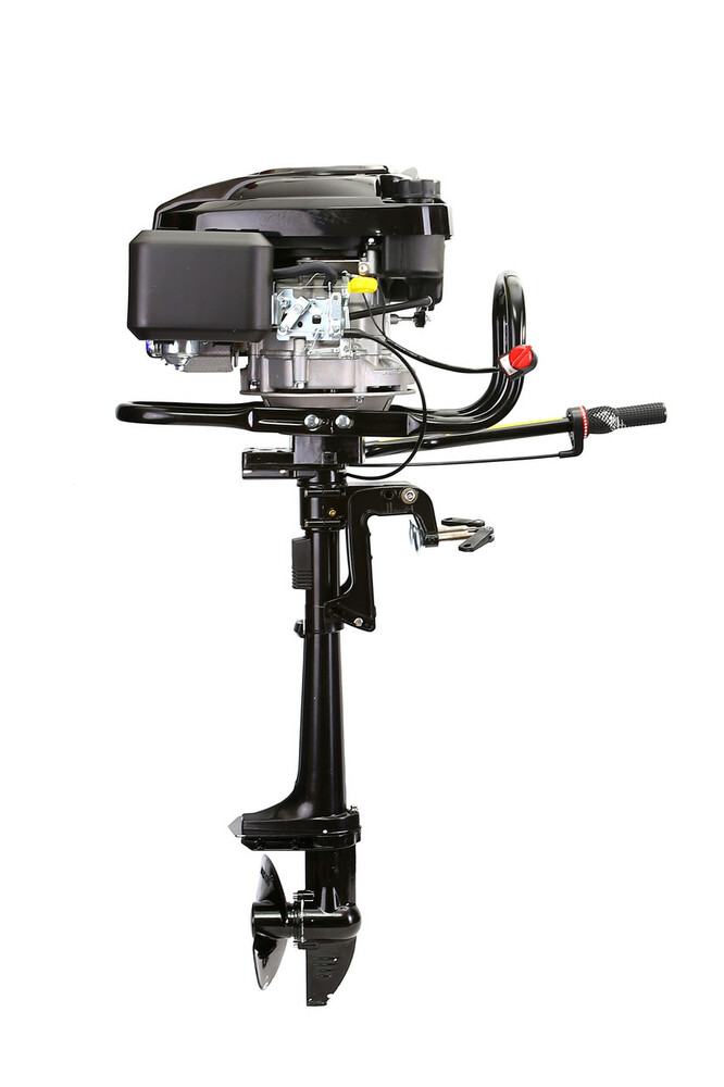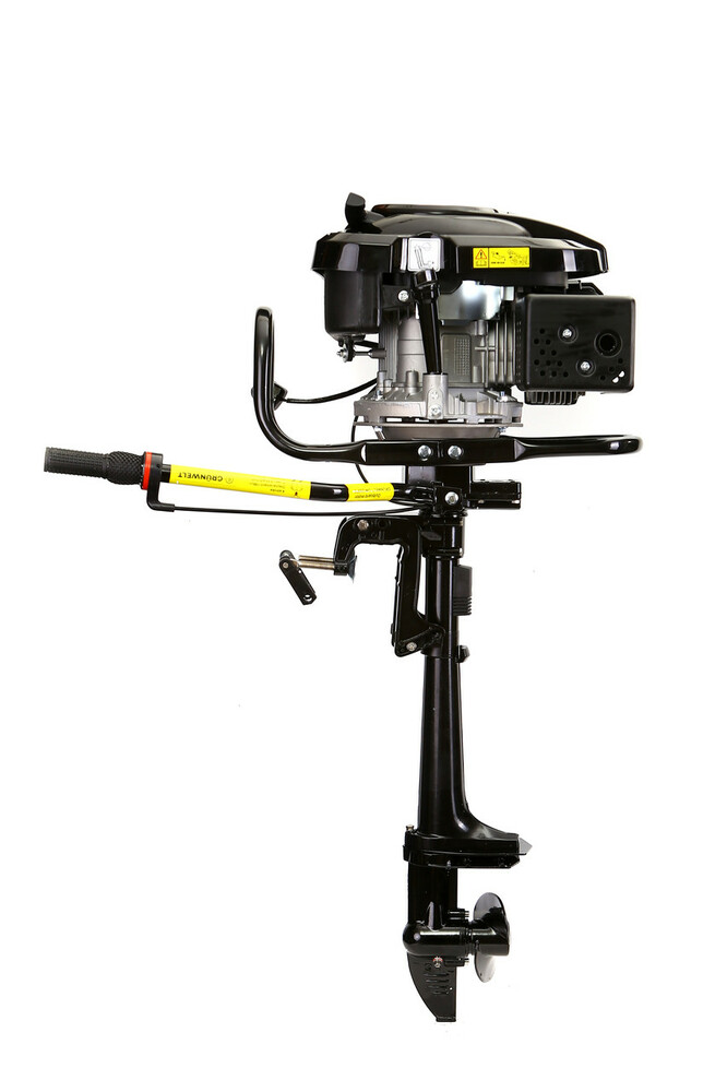 Четырехтактный лодочный мотор Grunwelt 6,5 HP воздушного охлаждения. Управление дроссельной заслонкой осуществляется ручкой газа, которая находится на румпеле и имеет ступенчатый фиксатор положения. Движение  задним ходом осуществляется разворотом мотора на 180.