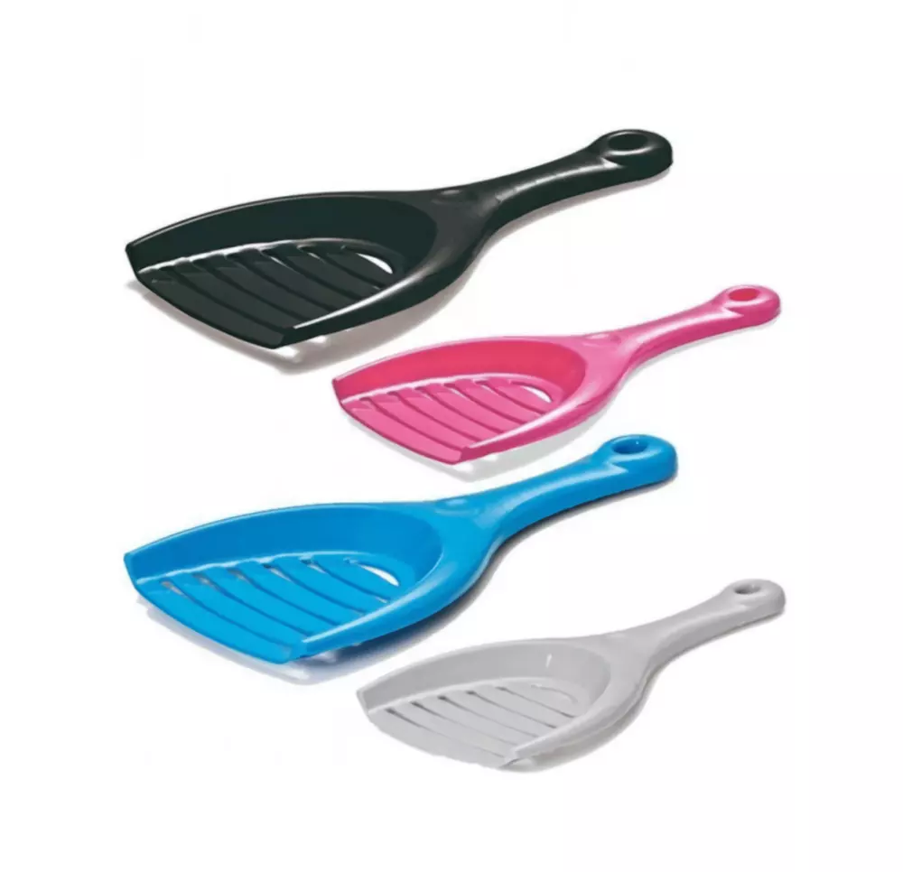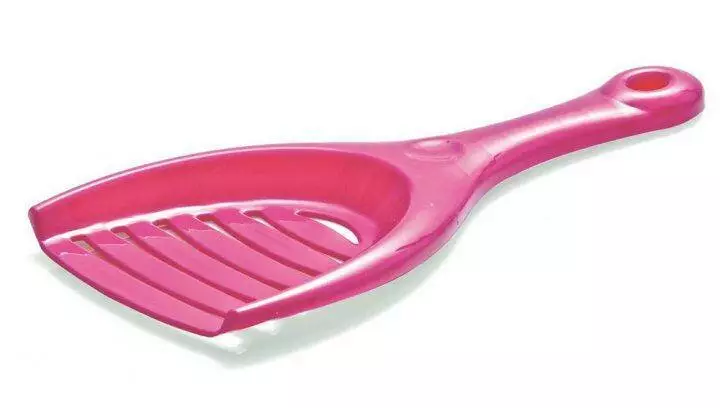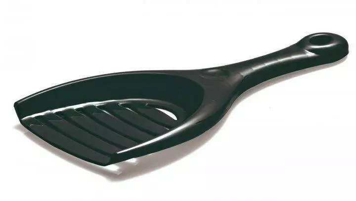 Виріб має зручну ручку та полотно з бортиками з боків, які допомагають не втратити грудки брудного наповнювача.
