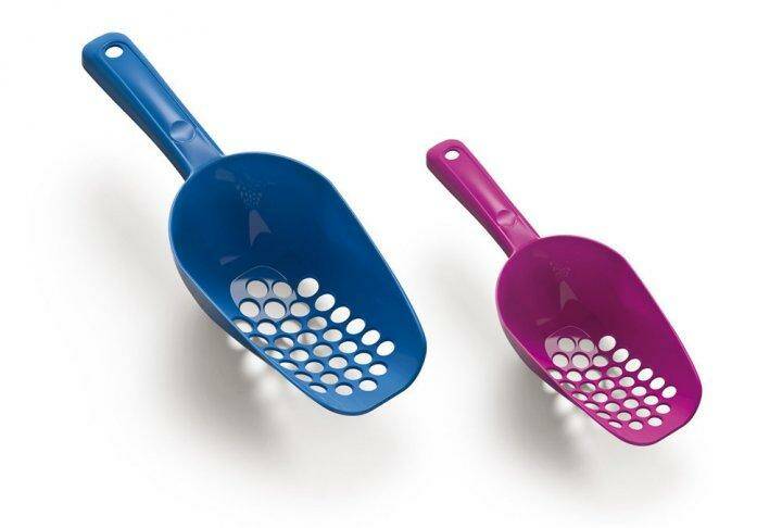 Завдяки великим прорізам у полотні лопатки та високим бортикам чистий наповнювач легко просівається назад у лоток та сприяє економній витраті наповнювача.