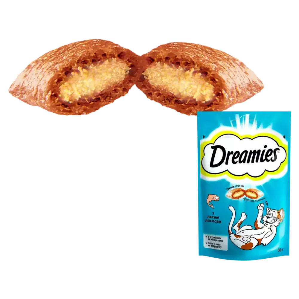 DREAMIES з ласим лососем - додатковий раціон для дорослих котів та кошенят, старших 8 тижнів.