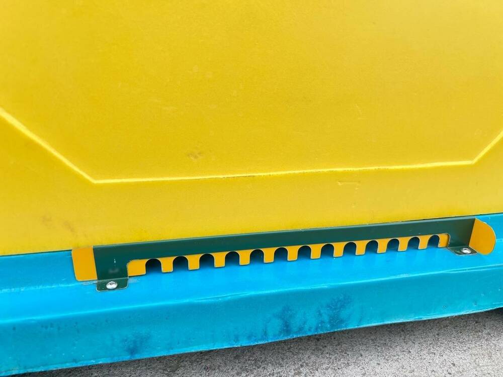 Льотковий загороджувач металевий 230 мм - призначений для регулювання розмірів льотків у вуликах, захисту гнізд бджіл від проникнення мишей та закривання льотка під час транспортування вуликів з бджолами. Складається із двох металевих пластин. Зовнішня пластина має жолоб, яким рухається внутрішня пластина з вирізами для проходу бджіл.