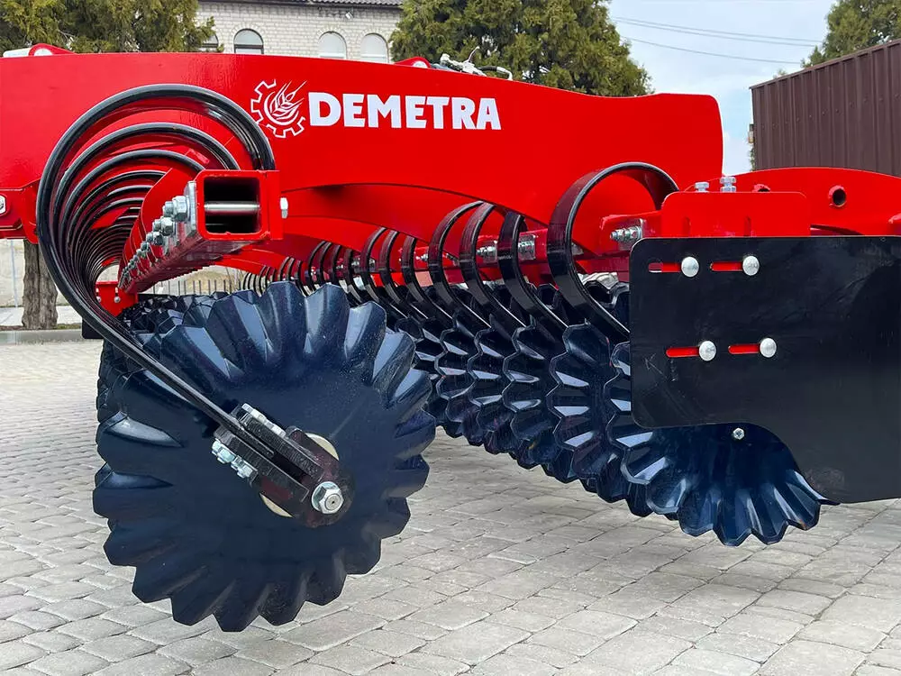 Концепція дискових борін Деметра заснована на індивідуально розташованих у два ряди дисках, розташовані в шаховому порядку по відношенню один до одного на відстані 25 см підвішених на листових пружинних стійках (3-D technology) стійки є одночасно запобіжним механізмом від каміння. Розташування дисків та стійок забезпечує роботу без забивання робочих органів. Робочі органи витримують рівномірну задану глибину. Точність дотримання робочої глибини забезпечується заднім катком. Лущильник Деметра може комплектуватися кількома варіантами робочих органів та котків. Дана технологія дозволяє працювати з нижчим тяговим опором у порівнянні з іншими способами підвісу робочих органів, при цьому забезпечуючи незалежне реагування на складні ділянки, що дозволяє працювати, у тому числі на кам'янистих ґрунтах, робочі швидкості до 18 км/год зменшують негативний вплив у вигляді ущільнення ґрунту.