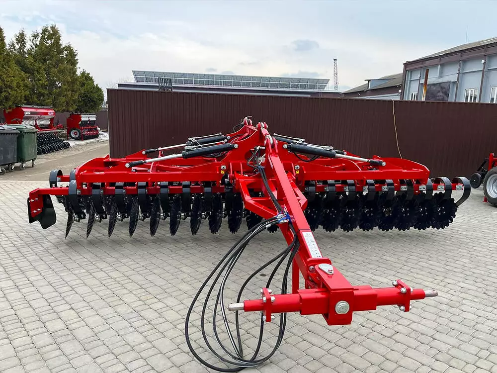 У конструкцію закладено функцію поперечного регулювання передньої балки дисків. Це дозволяє налаштувати машину для найефективнішої роботи для передпосівної підготовки, робота з пожнивними рештками або покривними культурами. Зношування дисків з часом змінює в небажаний бік траєкторію руху дисків, при цьому значно погіршує якість обробки. Крім того, регулювання дисків ґрунтообробної машини дозволяє знизити знос дисків та продовжити термін служби машини.