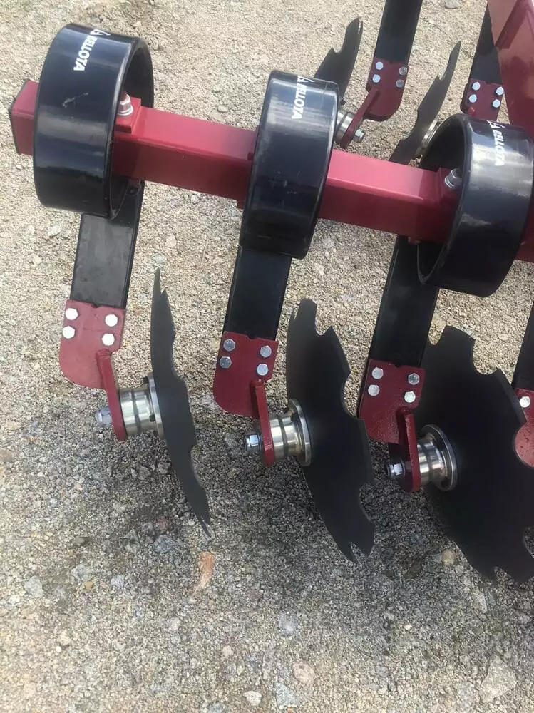Індивідуальні пружинні стійки робочих органів (в базовій комплектації - вирізні диски Ø 460 мм) з профілю 90 * 14 мм забезпечують безперервну та ефективну роботу лущильника навіть на засмічених і кам'янистих ділянках. За рахунок вібрації відбувається самоочищення робочих органів від рослинних залишків та грунту. Термін служби і результати роботи пружинних стійок непорівнянні зі стійками на м'яких гумових демпферах.