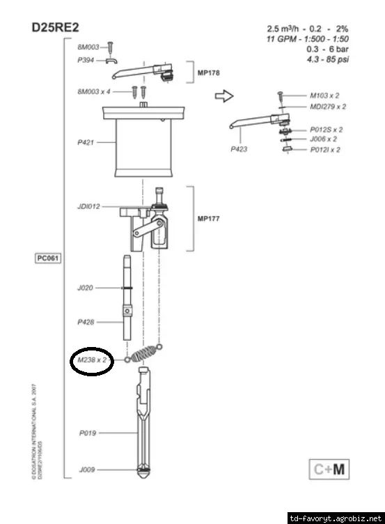 M238 пружина активатора D25RE2 и D25RE5 Dosatron
