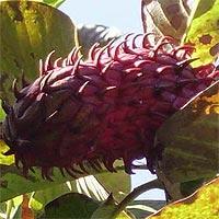 Листопадное дерево с пирамидальной кроной, достигающее в культуре 15 м высоты, с гладкой серой корой, буро-каштановыми побегами, очень крупными, обратнояйцевидными листьями (40 х 20 см), сверху зелеными, снизу — голубовато-белыми. Листья обычно собраны на концах побегов по 8-10. Прекрасны ее крупные бутоны и эффектные цветки (до 16 см) кремово-белой окраски с сильным, пряным ароматом. Ярко-красные плоды достигают 20 см длины.