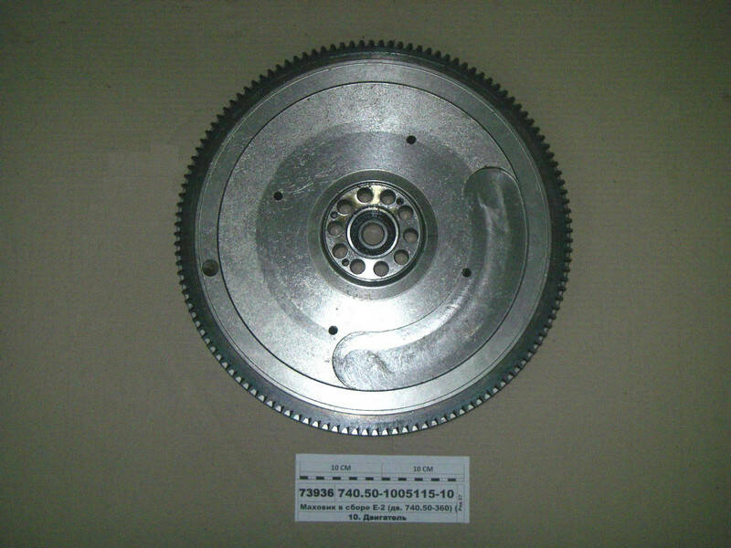 Маховик с венцом в сб. ЕВРО-2 (пр-во КамАЗ). Предназначены для работы с 1-но дисковым сцеплением производства F&S «Fichtel&Sachs». Крепление маховика к фланцу коленчатого вала осуществляется десятью болтами 7406.1005127 (М16), угловое положение маховика определяется штифтом. Дисбаланс кг*м (направление) 0,207 (15°) Угол паза под фиксатор 24° Модели двигателей 740.50, 740.51, 740.52, 740.53