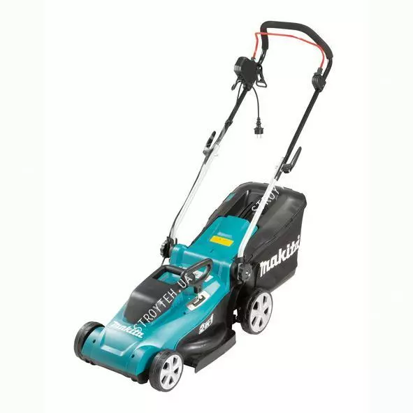 Makita ELM3720 Электрическая газонокосилка Коллекторный двигатель 1,4 кВт Усиленная стальная рама Твердый, УФ-устойчивый корпус из полипропилена Соответствует европейскому стандарту (СЕ)