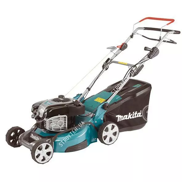 Makita PLM4632N Газонокосилка бензиновая Эргономичная ручка для удобства маневрирования Мягкая, плоские рукоятки обеспечивают более удобную работу с инструментом Крепкие болты крепления ручки Мульчирование и боковой отверстие для выброса травы обеспечивают более высокую эффективность работы при обработке больших площадей Прочный корпус из стали Индикатор заполнения травосборника Функция бокового выброса травы