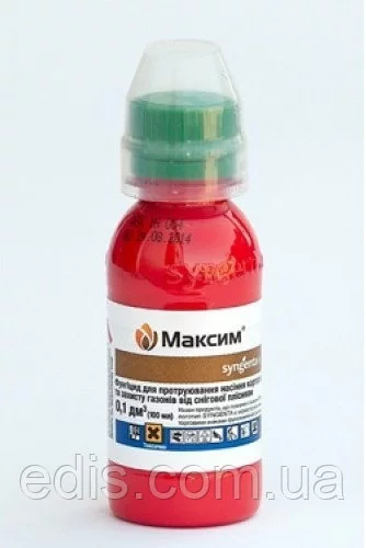 Максим - фунгіцидний препарат контактної дії. Призначений для захисту сільськогосподарських культур від хвороб, викликуваних грибами з класів Аскоміцетів, Базидіоміцетів і недосконалих грибів, які передаються з насінням та через грунт, при цьому не чинить негативного впливу на корисні мікроорганізми.