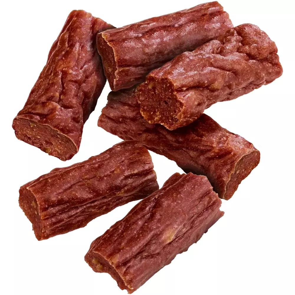 Маленькі мʼясні палички — це смаколики, що нагадують палички ковбаски салямі. Виготовлені з найкращої яловичини, зручні для ласування та для винагороди улюбленця під час тренувань. Без цукру, барвників, консервантів та штучних підсилювачів смаку.