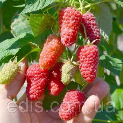 Малина Ісполін - супер-сорт, компактний кущ дає до 6 кг соковитих солодких ягід рубінового кольору. Їхні розміри вражають: до 5 см і масою до 14 г! Чудовий смак та відсутність шипів роблять Ісполіна дуже привабливим для комерційного вирощування. Через товсті міцні пагони до 2 метрів заввишки в народі сорт вважають малиновим деревом
