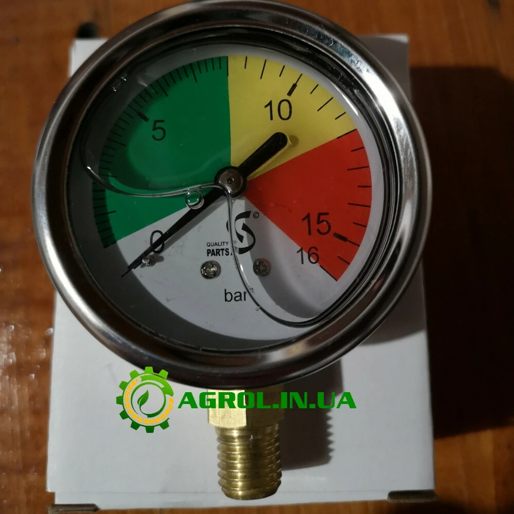 Манометр глицериновый для полевого опрыскивателя,M12*1,5/0-16bar/Ø60, металический, хромированный корпус. Резьба на стандартный польский распределитель.