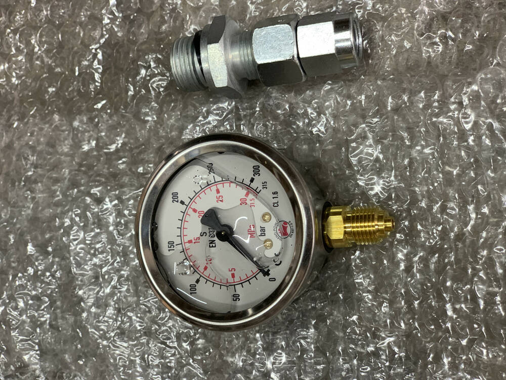 Вартість вказана тільки за манометр, без урахування перехідників і штуцерів, а також вартості гідророзподільника, який зображений для прикладу, як це може бути встановлене в системі.