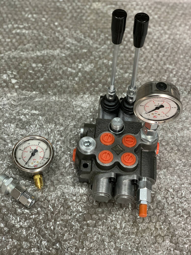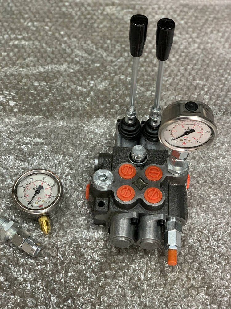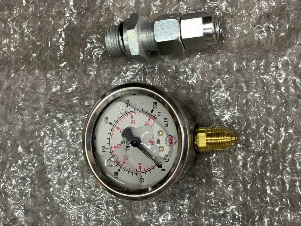 Вартість вказана тільки за манометр, без урахування перехідників і штуцерів, а також вартості гідророзподільника, який зображений для прикладу, як це може бути встановлене в системі.