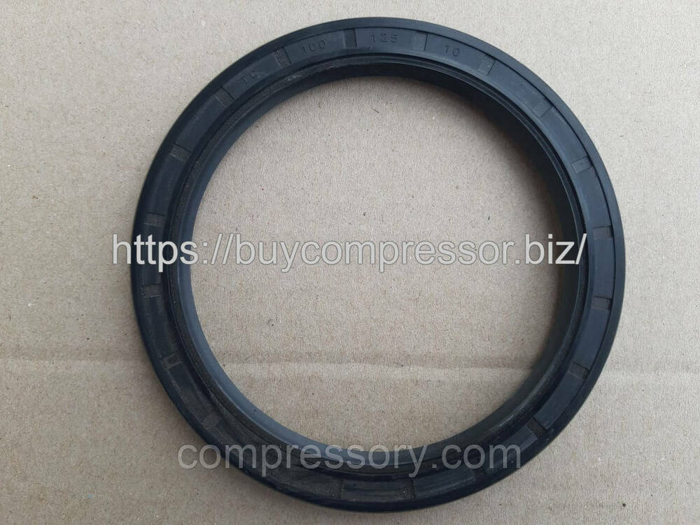 Манжета 100х125 (сальник) корпусу компресора КТ-6, КТ-7, КТ-6Ел, встановлюється на втулку манжети колінвала і всередині кришки передньої корпусу, необхідна для запобігання викиду масла з передньої кришки компресора.