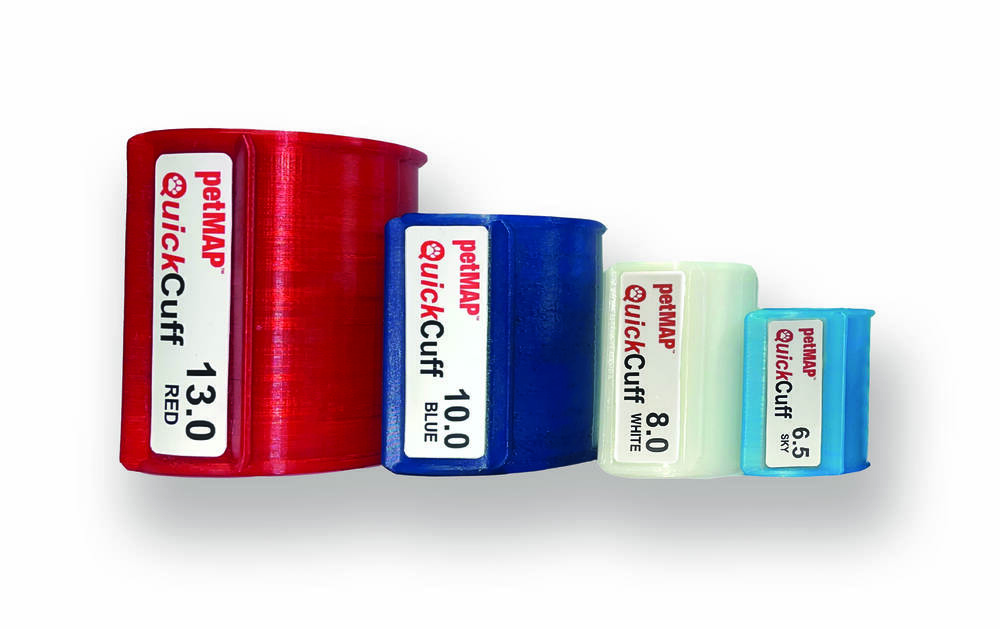 QuickCuffs™ — це революційні ветеринарні манжети від petMAP, створені для точного та зручного вимірювання артеріального тиску у тварин. Завдяки конструкції без липучок Velcro манжети легко накладаються однією рукою як на конічні, так і на рівні кінцівки — це прискорює роботу та підвищує комфорт пацієнта.