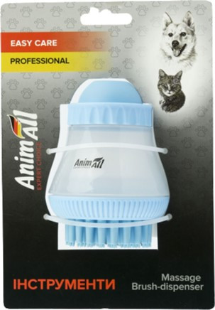 Масажна щітка AnimAll Groom з дозатором під шампунь для миття собак і котів. Її можна використовувати як силіконовий гребінець на суху шерсть або під час прийняття ванних процедур - попередньо заливається засіб для миття улюбленця в диспенсер, об'єм 75 мл. М'які та ніжні силіконові щетинки будуть приємні навіть найменшим тваринам.