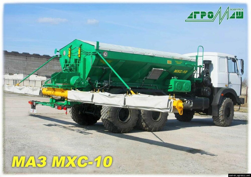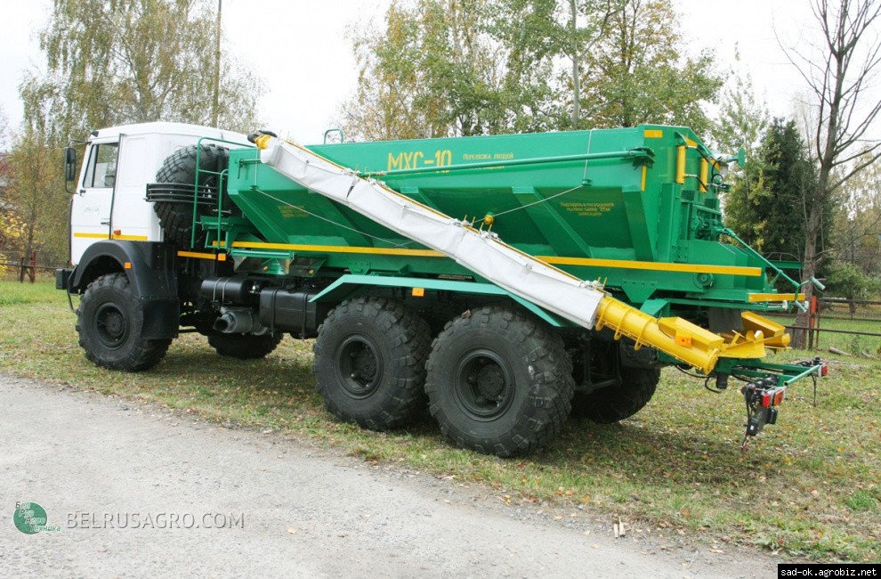 Автомобиль с платформой для внесения известковых материалов и минеральных удобрений на базе самоходного шасси МАЗ 631 705-264 со съемным кузовом предназначена для транспортирования и поверхностного внесения пылевидных химических мелиорантов. Может также использоваться для внесения основных доз твердых минеральных удобрений. Самоходное шасси обеспечивает повышенную мобильность в использовании.