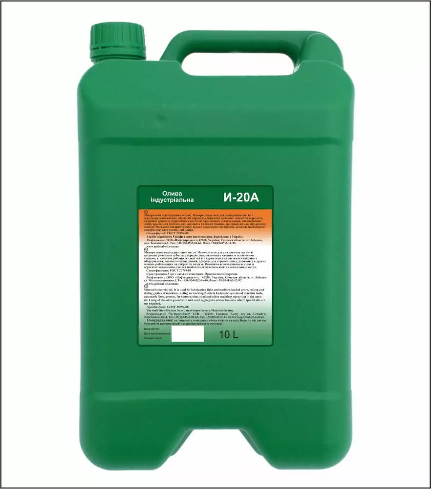 Індустріальна олива І-20А - дистилятна олива або суміш залишкової та дистилятної нафтових олив, отриманих із сірчистих та малосірчистих нафт селективного очищення.