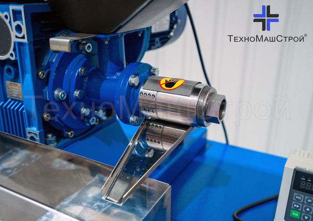 • Вихід переробленої сировини здійснюється через фільеру, розташовану на робочій частині обладнання. Вона легко знімається під час обслуговування шнекової частини після завершення роботи.