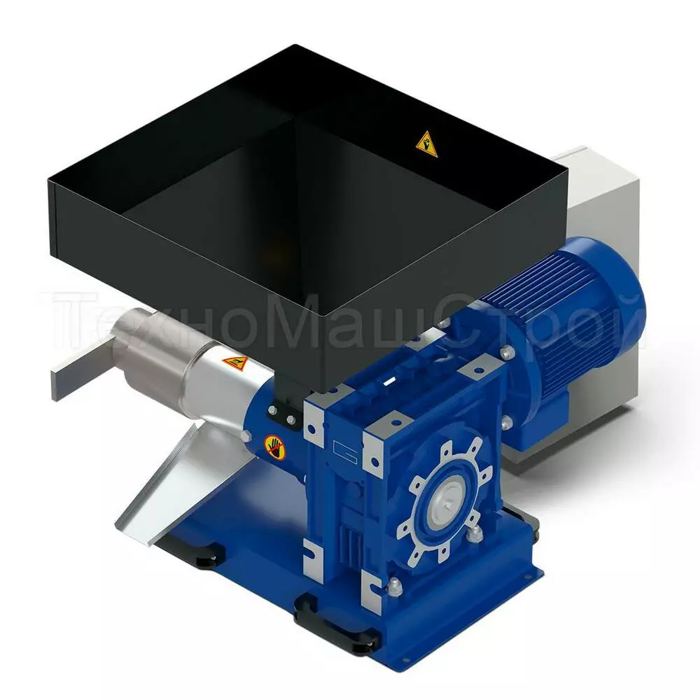• Сировина поміщається в бункер і, проникаючи через заслінку, потрапляє в шнек.
