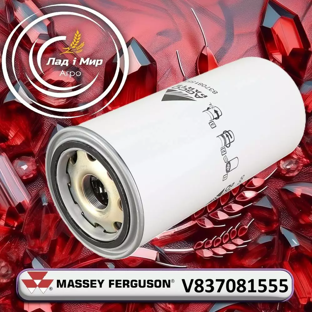 Масляний фільтр V837081555 до Massey Ferguson Massey Ferguson Limited крупний американьский виробник сільхозтехніки та обладнання. Входе до компанії AGCO. В даний час Massey Ferguson - це тільки назва бренду, що використовується AGCO, але техніка Massey Ferguson залишається найбільш широко продається в усьому світі, а популяція функціонуючих тракторів під цим брендом налічує більше 5,2 мільйонів. Ви можете замовити агрозапчастини Масляний фільтр V837081555 до Massey Ferguson від на нашому сайті ladimiragro.com.ua. Якщо у Вас виникли додаткові запитання по запчастині Масляний фільтр V837081555 до Massey Ferguson. Ви можете зателефонувати за телефонними номерами. Всі номери вказані на сайті ladimiragro.com.ua. Наші фахівці мають великий досвід. Вони нададуть всю вичерпну інформацію на агрозапчастини до техніки John Deere. Також в разі випадку, запропонують альтернативу. Це можуть бути інші агрозапчастини до сільгосптехніки таких відомих виробників як John Deere, Claas,  New Holland, Challenger, Fendt, Great Plains, Horsch, Case, Kinze, Massey Ferguson. Компанія "Лад і Мир агро" - це Ваш надійний партнер. Ми зробимо все можливе і неможливе. Ми якомога швидко доставимо до Вас Масляний фільтр V837081555 до Massey Ferguson в найкоротший термін. Ми співпрацюємо з усіма перевізниками по всій Україні. Переглянути інші товари виробника Massey Ferguson  на нашому сайті. Лад і Мир Вашому господарству! Компанія «Лад і Мир Агро» є надійним партнером для сільськогосподарського виробника для замовлення оригінальної запчастини на сільськогосподарську техніку. Головним принципом є надання професійної підтримки і забезпечення потреб в запасних частинах для агротехніки для кожного клієнта нашої компанії. У нас ви можете замовити оригінальні агрозапчастини від таких відомих виробників, як Claas, Challenger, Fendt, Great Plains, Horsch, John Deere, Kinze, Massey Ferguson та інших. Для цього можете перейти до нашого каталогу – агрозапчастини Команда «Лад і мир агро» - це надійний партнер, який пройде з Вами шлях протягом усього періоду експлуатації, забеспечуючи якісне постачання запасних частин для імпортної техніки.