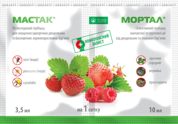 Послідовний селективний гербіцид Мастак + Мортал — засіб для боротьби з бур'янами в посівах полуниці, малини, смородини й агросу.