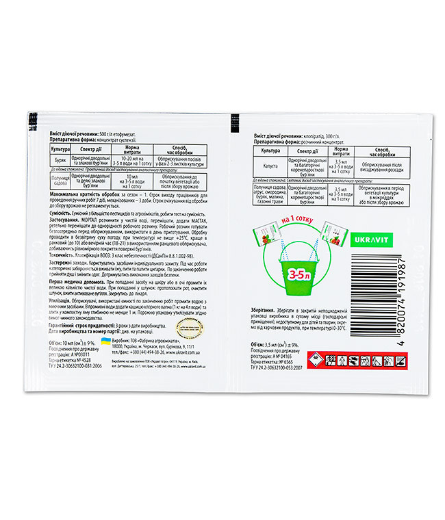 • Широкий спектр дії: Мастак + Мортал здатні знищити безліч видів сорних рослин;