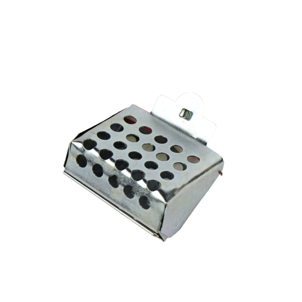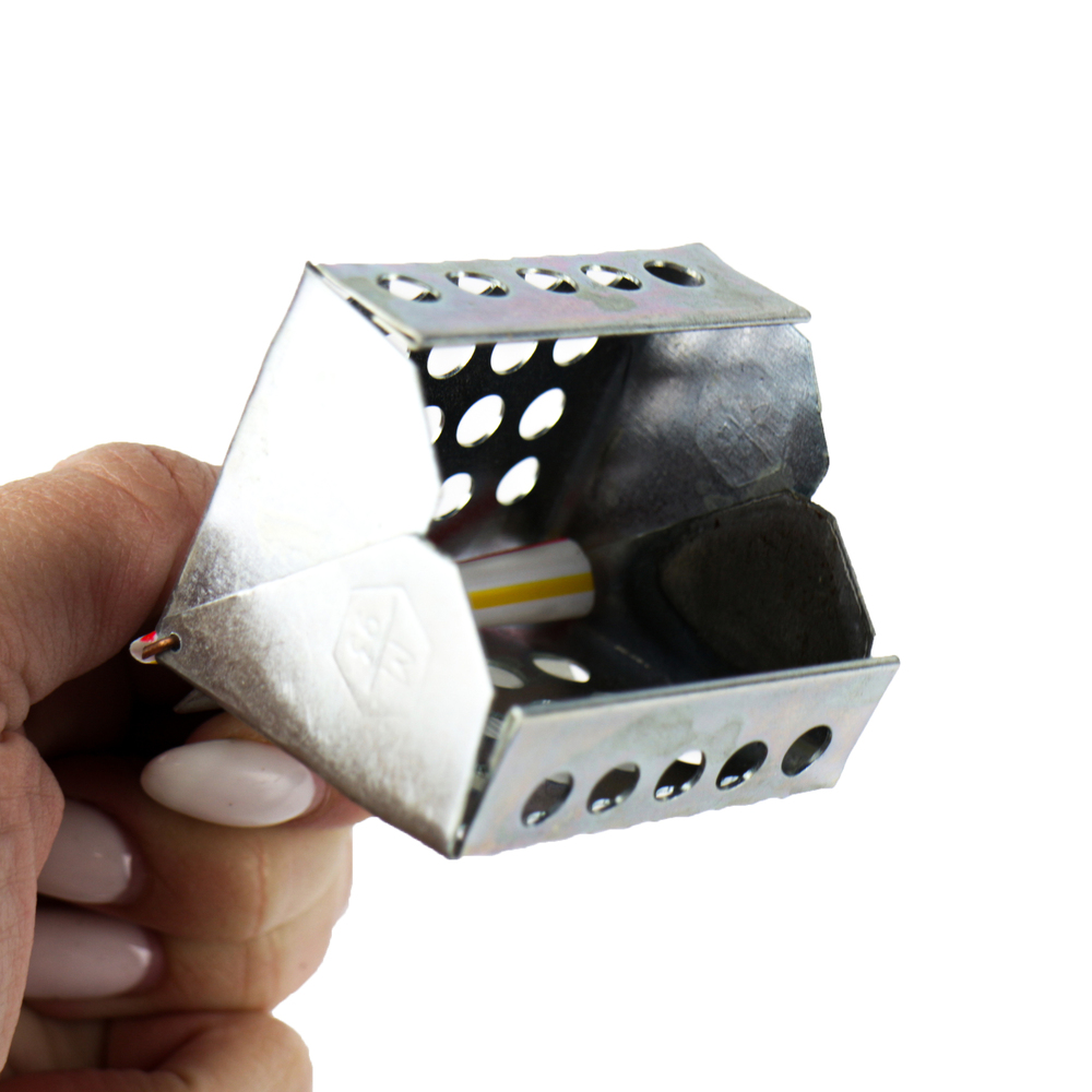 Виготовляється з оцинкованої сталі.  На затискачах також є отвори для вільного доступу повітря. Дуже просте, але зручне пристосування для кожного бджоляра.