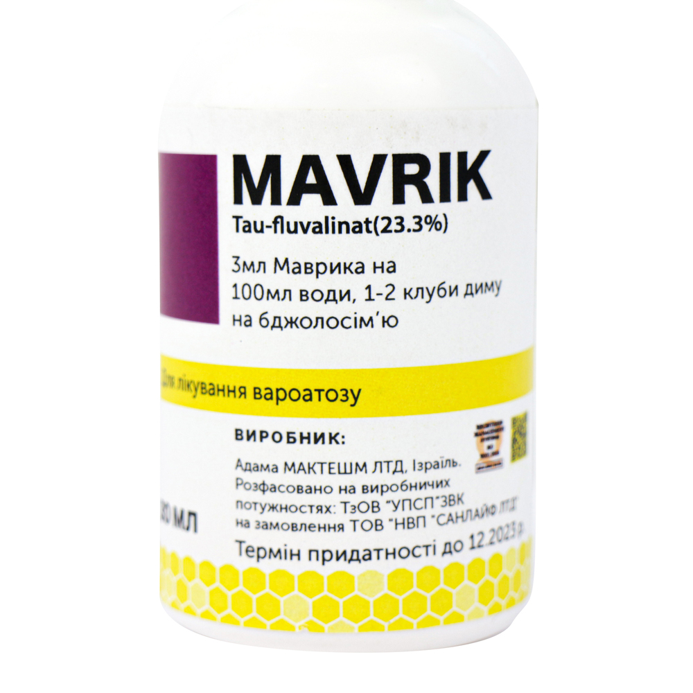 Маврик, діюча речовина (Tau-fluvalinat), чинить руйнівну дію на нервову систему кліща Варроа, і вражає його рухові центри. При цьому не завдає ніякої шкоди бджолам.