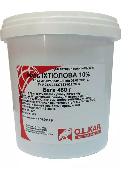 1 г препарату містить: іхтіол 100 мл, вазелін до 1 г.