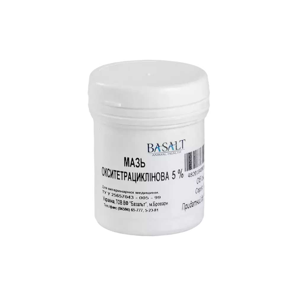 опис Мазь жовтого кольору зі специфічним запахом. склад 100 г препарату містить діючу речовину : окситетрацикліну гідрохлорид -5 р. Окситетрациклін - бактеріостатичний антибіотик широкого спектру дії. Активний по відношенню до грампозитивних ( Staphylococcus spp . , В тому числі тих , які продукують пеніциліназу , Streptococcus pneumoniae , Clostridium spp . , Bacillus anthracis , Listeria monocytogenes ) та грамнотрецательним ( Neisseria gonorrhoeae , Bordetella pertussis , Escherichia coli , Klebsiella spp . , Salmonella spp . , Shigella spp . ) мікроорганізмам , а також Rickettsia spp . , Chlamydiaceae , Mycobacterium spp . , Spirochaetaceae . Стійкі до препарату більшість грибів , дрібні віруси. застосування Лікування у великої рогатої худоби , овець , кіз , свиней , собак , котів інфікованих екзем , інфікованих ран , гнійних захворювань шкіри , ерозій , дерматитів , викликаних чутливими до окситетрацикліну мікроорганізмами. дозування Уражені ділянки шкіри змазують 1-3 рази на день. Можливо накладення пов'язки. протипоказання Не застосовувати при мікозах шкіри. застереження Використовувати з обережністю для тварин з підвищеною чутливістю до окситетрацикліну . форма випуску Банки з полімерних матеріалів по 50 г , 100 г. зберігання Сухе , темне місце при температурі від 5 ° С до 25 ° С .