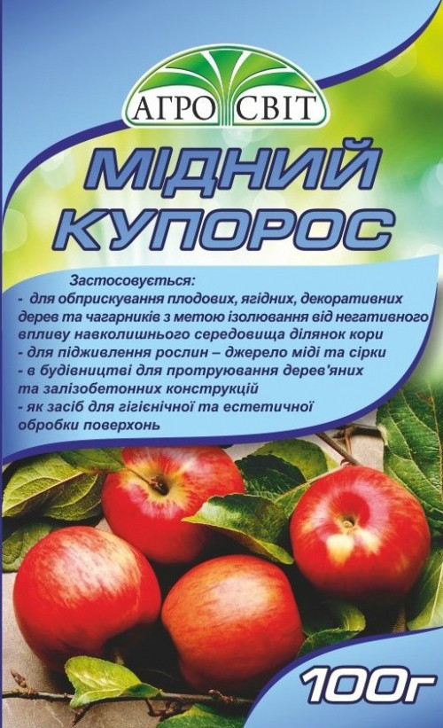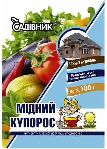 Мідний купорос фунгицид для профілактики та лікування грибкових захворювань рослин. Активна речовина — міді сульфат, у формі розчинного порошку блакитного кольору. Застосовується також для знезараження ґрунту. Не фітоксичний, якщо дотримуватися рекомендованих норм. Діє впродовж 30 днів.