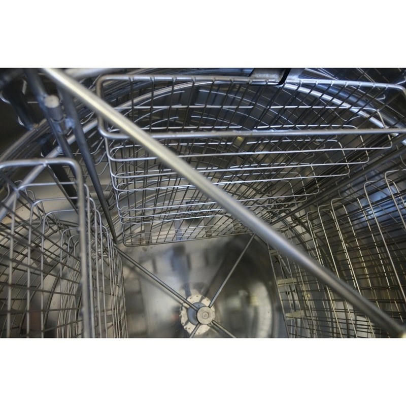 Кошик зроблений із нержавіючих прутів та оснащений касетами, які виготовлені з кислотностійких прутів, завдяки відповідному поєднанню прутів стільники надійно захищені від руйнування під час обертання кошика.