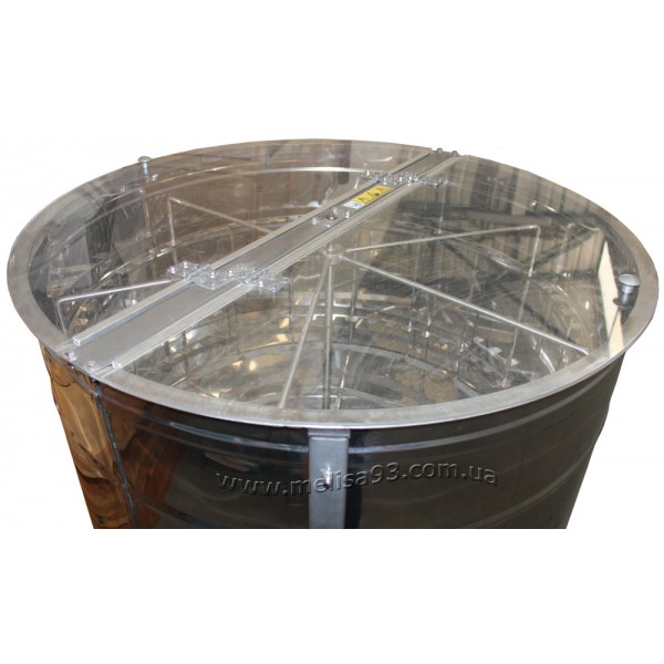 Медогонка радіальна нержавіюча 27-р Дадан 300мм/54-піврамок 145мм ТМ "Меліса-93" - нержавіюча сталь (марка сталі 304) ремінна передача, з підставкою, кришкою і електроприводом.