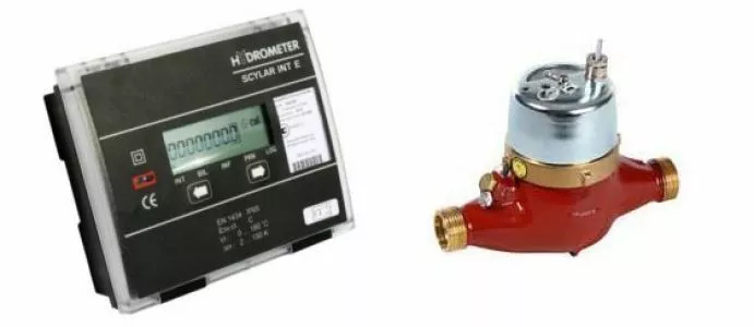 До складу лічильника тепла входить: тепловий обчислювач Scylar INT Е, перетворювач витрати механічний, пара термоперетворювачів опору.
