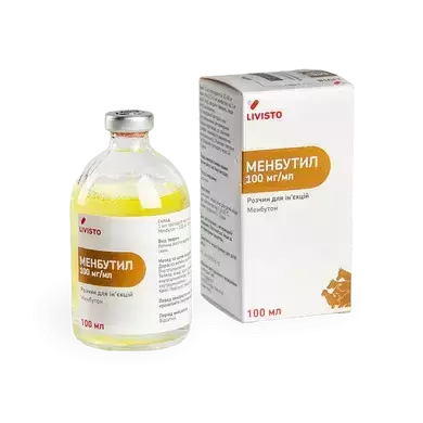 Особливі вказівки: Менбутіл не слід застосовувати одночасно з лікарськими препаратами, що містять кальцій, антибіотиками групи пеніциліну, прокаїном, вітамінами групи B, а також змішувати в одному шприці з іншими лікарськими препаратами. Забій великої рогатої худоби на м'ясо дозволяється через 3 доби після останнього застосування лікарського препарату.