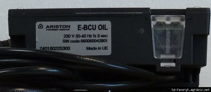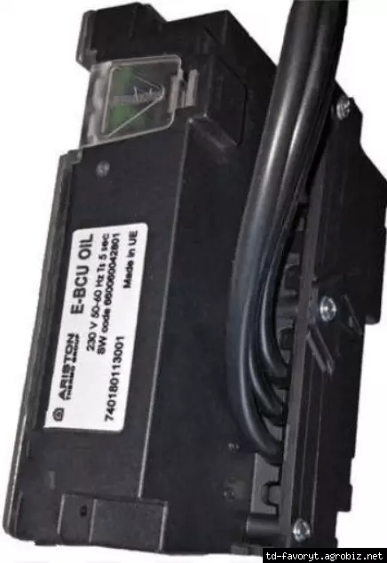 •  блок управления и безопасности Ariston E-BCU OIL отслеживает и управляет работой горелки с воздушным наддувом. Благодаря тому, что ход программ управляется микропроцессором, обеспечивается
