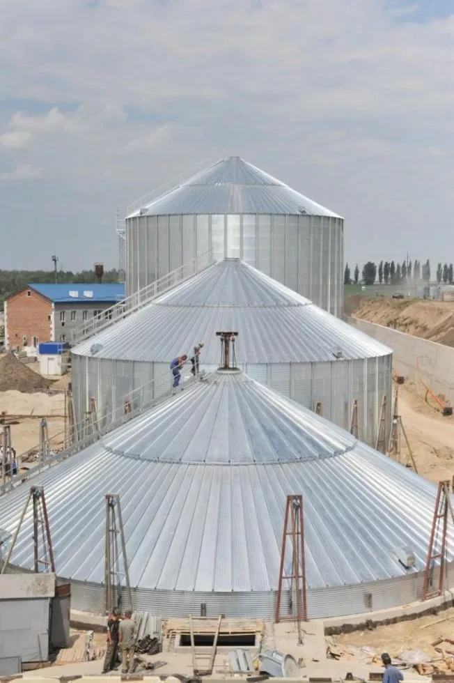 Металеві силоси мають дах і днище конічної форми, або плоске бетонне дно, яке обладнане вивантажними каналами і транспортерами.