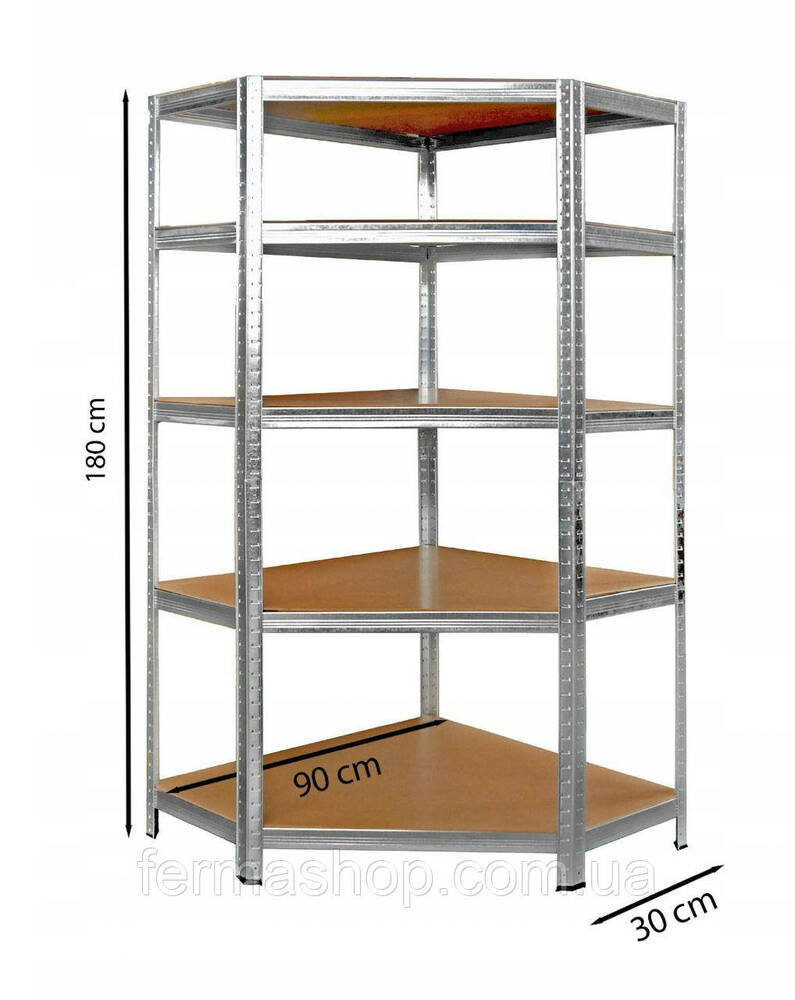 Металлический угловой стеллаж 180x30x90 5 полок (серый)