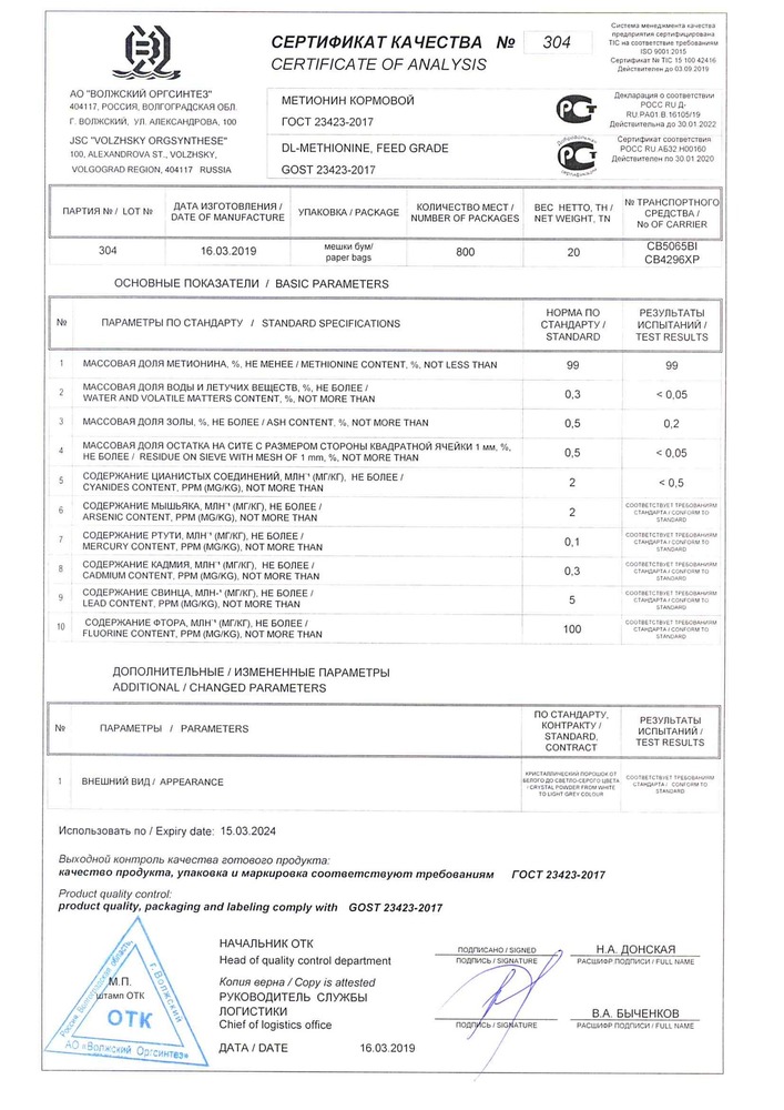 Показання до застосування: Нормалізація білкового обміну, підвищення продуктивності свиней та птиці.