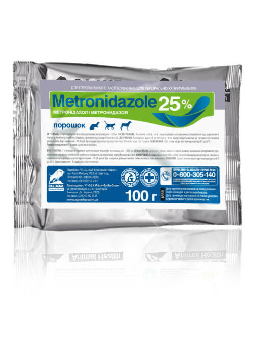 Лікування у собак, котів та норок діареї, яка спричинена Campylobacter spp., виразкового гінгівіту, лямбліозу, амебіазу, гіардіозу, трихомонозу, анаеробних інфекцій.