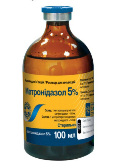 Внутрішньом’язово в дозі 1 мл на 10 кг живої ваги (5 мг метронідазолу на 1 кг живої ваги) при дизентерії викликаної Treponema spp., 2 мл на 10 кг маси тіла при дизентерії збудником якого є анаероби, а також при балантидіозі. Препарат вводять один раз на добу до зникнення симптомів (як правило, 1-2 введень достатньо).