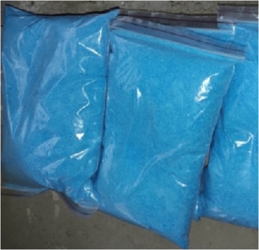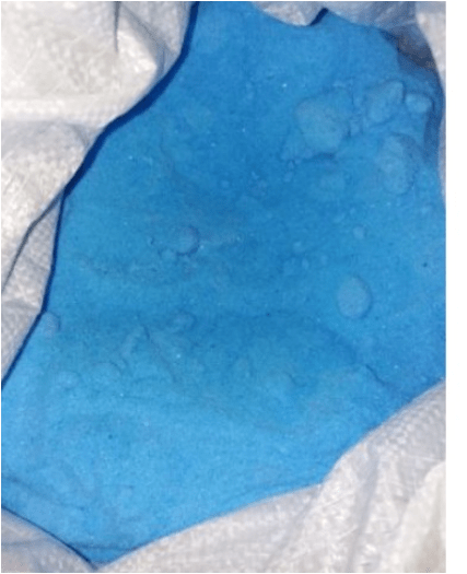 Блакитні кристали (гранули) добре розчиняються у теплій воді.