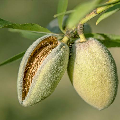 Плоди мигдалю світло коричневого кольору, форма видовжена, овальна. Сорт солодкий, середнього терміну достигання. Маса плоду 4-6 г.
