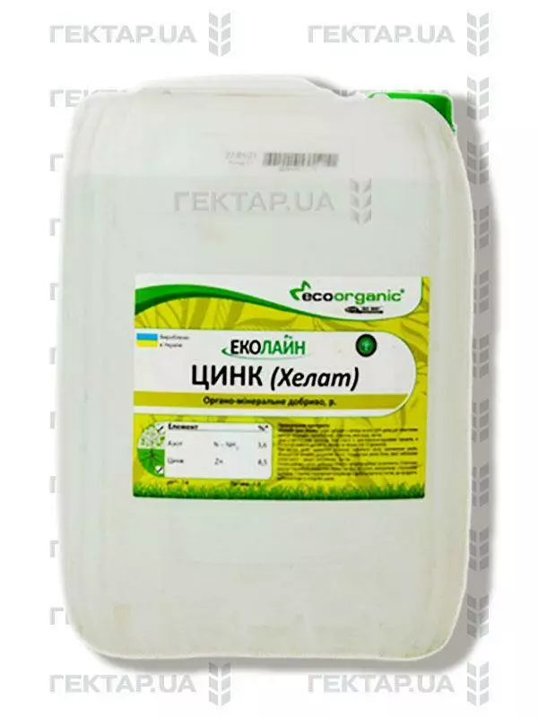 Еколайн Цинк Хелат - висококонцентроване хелатне цинкове добриво, розроблене для усунення прояву дефіциту цинку, для позакореневого підживлення культур, особливо вимогливих до умов забезпечення цинком (кукурудза, соя, сорго).