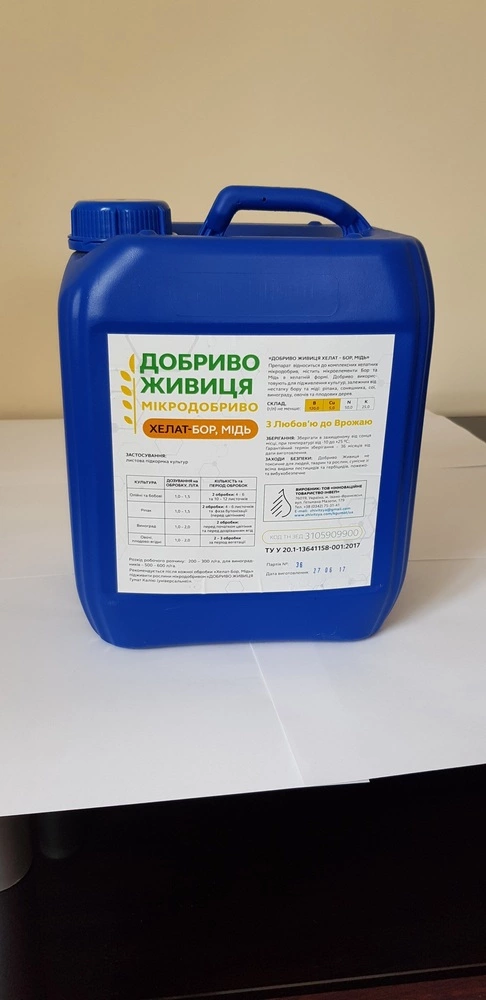 Застосування: листова підкормка культур, залежних від нестатку Цинку /бобові та технічні- кукурудза, соя, сорго, інше/.